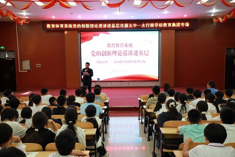 9月30日,济源教育体育系统“党的创新理论进基层”巡讲活动在济源五中-太行路学校教育集团举行专场。