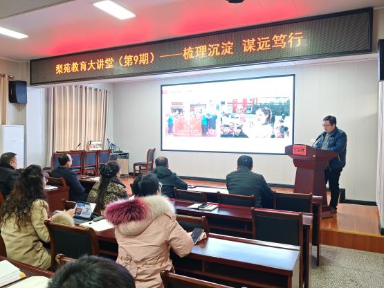 为系统梳理2025年义务教育教学改革成果,扎实推进核心素养落地生根,同时为济源基础教育课程教学改革学术研讨活动遴选优秀汇报人选,1月4日,梨林中心校举办第九期“梨苑教育大讲堂”活动。本次活动以“梳理沉淀 谋远笃行”为主题,辖区中小学校校长、业务副校长、教改项目组成员及中心校工作人员近30人齐聚一堂,共话教改,共谋发展。
