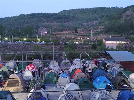 “红军不怕远征难,万水千山只等闲……”清晨,济水一中师生在学校党委书记冯迎道的带领下,背负双肩包,口诵毛泽东《七律·长征》,排着整齐长队,向着百里目标,昂首前行。在途中,同学们充分发扬坚定信念、不畏艰苦的“长征精神”。在“承留——大峪——坡头”的崎岖山道上,同学们尽管头顶烈日,身负沉重行囊,满脸汗水,却仍然咬牙坚持,终无一人中途退出。玉泉校区八(7)班女生张柯鑫在途中脚底磨破,依旧拄着竹棍继续前行。师生们让她坐车时,她摇手说:“不用,不用,我能行。我想再体验体验‘长征’。”在大峪镇太行周庄,同学们还利用自己的双手与坚毅,在旷野上搭起千顶露营帐篷。夜晚,帐篷外灯火通明,同学们欢聚灯下,高唱《长征组歌》,歌声响彻四野……
