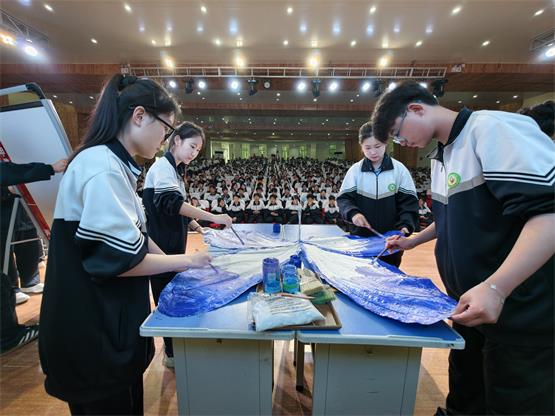 静态展区同步开放,设有抽象油画、创意折纸蝴蝶、二十四节气文化墙、《本草纲目》书画墙、《千里江山》画卷、《春意盎然》书画区、解压涂鸦墙等 7大主题展区,师生作品琳琅满目,充分展现美育实践的丰富维度与创意活力。学校自2011 年开设艺术选项课以来,持续深耕美育教学,开设歌唱、器乐、舞蹈表演、音乐素养、戏曲、语言表演、书法、国画、创意速写等10 余项艺术课程,构建全覆盖、多样化、高质量的美育课程体系,让每位学生都能找到兴趣支点、提升艺术素养、收获舞台自信,真正实现以艺润心、以美培元的育人目标。到现场欣赏指导的社会艺术界专业人士高度评价:济源高级中学有“三奇”“三美”。一是男旦水袖表演。梅兰芳是国家男旦第一人,济源高级中学竟然有这么专业的男旦表演,真是一大奇;二是高级中学的学生现场作画猛虎下山,水平很高,实在称奇;三是京剧《定军山》表演,所选作品经典,表演精湛,更为一奇。济源高级中学大美之处在于,入校所见的学生礼仪之美;校园现场环境整体布置之美;整体表演的舞台美、作品美、舞蹈美,美育价值极高。