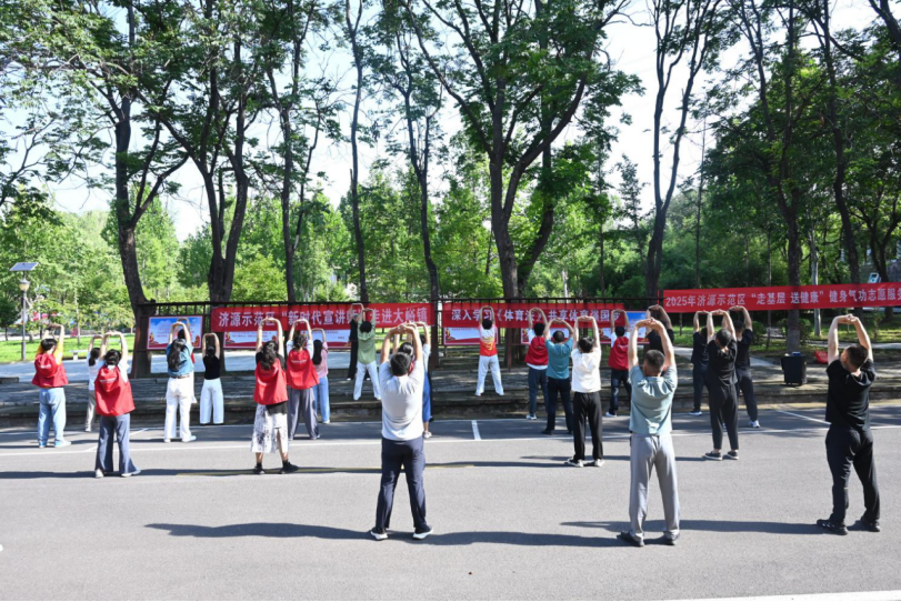 为深入贯彻落实全民健身国家战略,弘扬中华传统体育文化,由济源示范区教育体育局主办、济源市健身气功协会承办的2025年济源示范区“走基层 送健康”健身气功全民健身志愿服务活动于8月11日至14日圆满举行。活动分别在坡头镇坡头村(8月11日-13日)和大峪镇全民健身中心(8月12日-14日)接力开展,吸引了来自基层的120余名健身气功爱好者和村民积极参与。