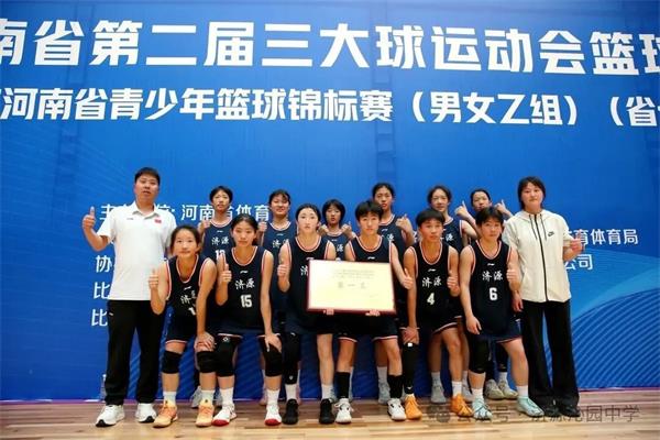 4月17日至24日,河南省第二届三大球运动会篮球项目暨2026年河南省青少年篮球锦标赛(男女乙组)(省十五运会预赛)在济源篮球城举行。沁园中学女篮不负使命,代表济源示范区出征赛场,以敢为人先的勇气、追求卓越的信念,一路披荆斩棘、奋勇拼搏,最终斩获本次比赛初中女子组冠军。