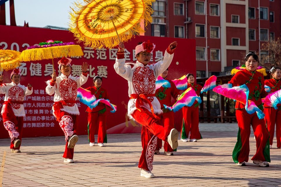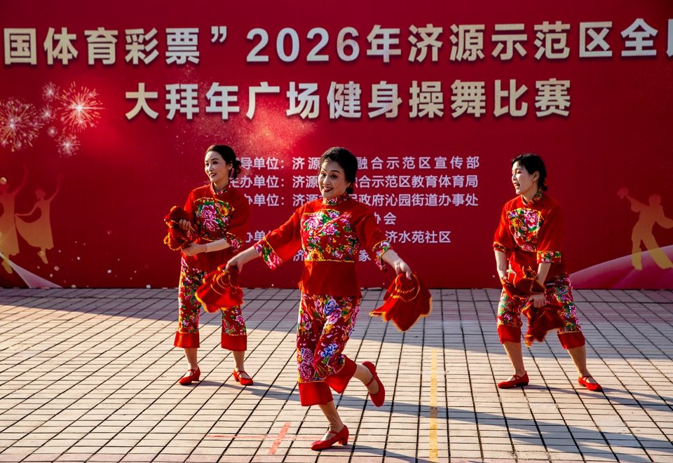 2月8日,中国体育彩票2026年济源示范区全民健身大拜年广场健身操舞比赛在沁园街道办事处济水苑举行。