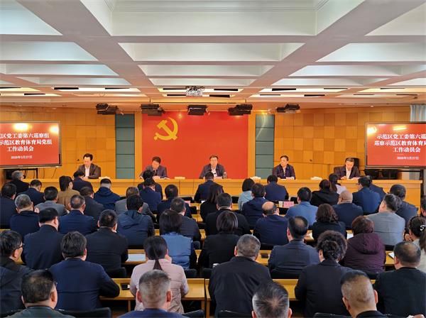 根据示范区党工委统一部署,3月27日,示范区党工委第六巡察组对示范区教育体育局党组巡察“回头看”进驻动员会召开。示范区党工委组织部副部长(主持日常工作)、示范区党工委巡察工作领导小组成员卢向阳,示范区党工委第六巡察组组长苗春芳,示范区党工委第六巡察组副组长苗晓林、李成杰,巡察协调服务室主任孔菲菲,以及第六巡察组其他成员出席会议。示范区教育体育局领导班子成员,局机关各科室(二级机构)负责人,各中心校、市直学校书记校长,民办学校负责人参加会议。示范区教育体育局党组书记、局长、教育工委书记程盛代表示范区教育体育局党组作表态发言。