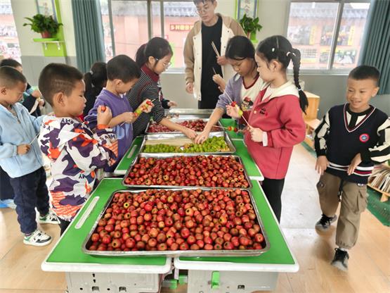 本次活动还设置了丰富多彩的创意实践环节。美术课上,同学们开展"红果印象"主题创作,用水粉吹画、种子拼贴等形式展现红果之美;语文课上,孩子们创作红果主题的童谣和短文,用文字记录这份秋日的甜蜜。值得一提的是,学生们还将精心制作的糖葫芦送给学校的保安和食堂工作人员,用实际行动传递感恩之情。