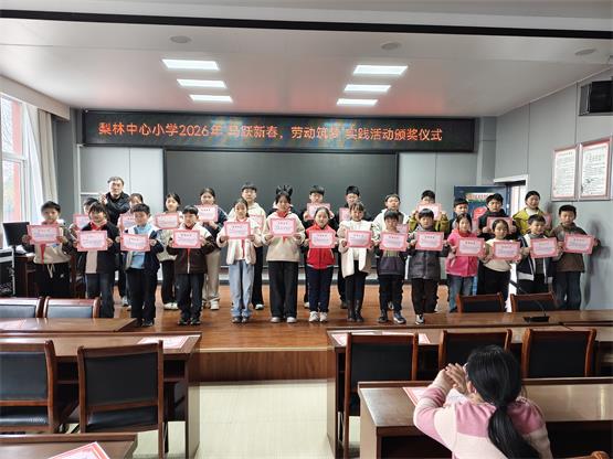 3月23日,梨林中心小学召开表彰大会,为62名荣获“劳动之星、创意之星”的学生颁奖,为梨林镇中心学校联合乡村田园劳动教育共同体开展的“马跃新春,劳动筑梦”寒假劳动实践活动画上圆满句号。