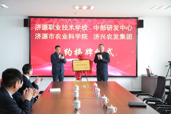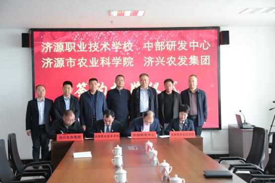 4月2日,济源职业技术学校、中国农业科学院蔬菜花卉研究所中部研发中心/中蔬种业科技(河南)有限公司、济源市农业科学院、河南济兴农业发展集团有限公司四方齐聚,共同签署了一份为期五年的战略合作框架协议。