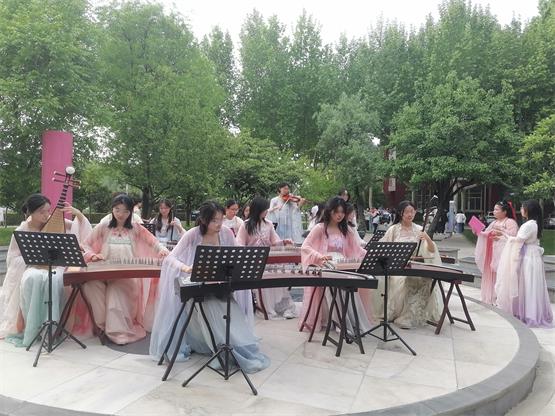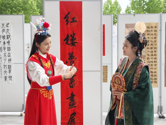 小剧场展演也成为学生们聚集观看的重头戏。8个节目分别在杏坛、弘毅广场、图书馆前精彩上演,参演的学生身着华丽服装,化身红楼梦中人物,以情景演绎、人物独白、评书、越调、英语情景剧、相声等形式演绎,用青春视角解读经典人物,展现跨学科融合的创新魅力。