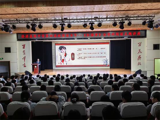 春深日暖,书香氤氲。上午,阅读活动分三个会场,由语文、英语、生物、历史等学科教师开设《红楼梦》微讲座,从文学、科学、历史、地理等多元视角解读经典,全体高一学生到场聆听学习,为活动营造文化氛围。