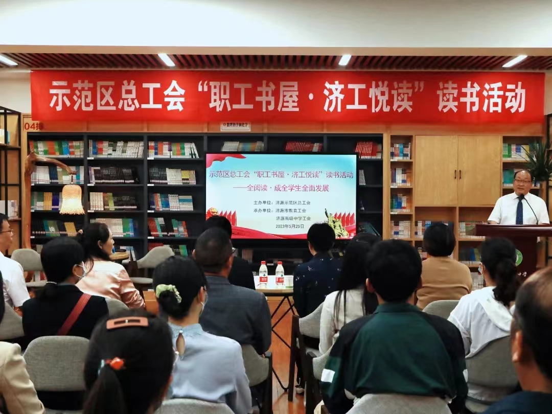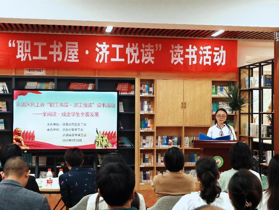 为深入落实党的二十大精神,全面贯彻习近平总书记关于推进全民阅读,建设书香社会的重要指示精神,推动全民阅读活动深入开展,5月25日,示范区总工会开展2023年度“职工书屋·济工悦读”第三期读书活动。本次活动由济源市教育工会、济源高级中学工会承办。济源示范区总工会党组成员、副主席李娅参加了读书活动,来自示范区各直属工会干部、职工书屋负责人、基层学校工会主席等50余人参加活动。