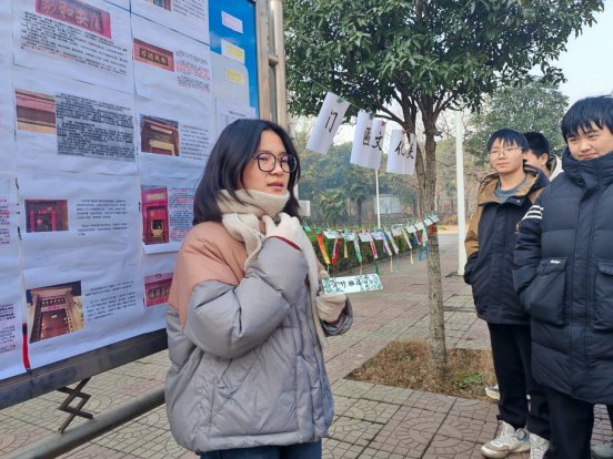 展览现场,雷朋歌老师开设了一堂生动的门匾文化课。课堂上,门匾文创作品的制作者们分享了创作初衷,雷老师则以此为切入点,将内容延伸至儒道文化等课内知识,把课外实践的乡土文化成果与课堂教学紧密结合,让门匾文化真正“回归”课堂,也让学生们在文化探究中实现了知识的迁移与深化。