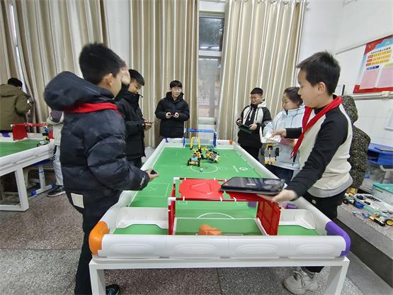 竞技比拼锤炼应变思维。以机器人拼搭成果为基础,组织机器人绿茵小将足球赛。学生在赛场灵活操控机器人,根据实时局势调整指令、规划路线,在竞技中提升操控技能,强化逻辑分析与随机应变能力。
