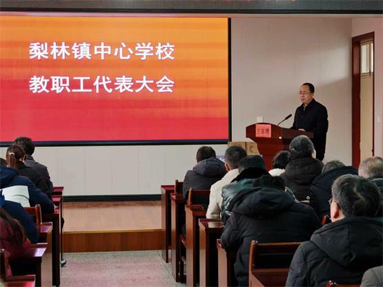大会在庄严的国歌声中启幕,民主议事环节成为全场焦点。会前,中心校广泛收集教职工提案,精准聚焦校园建筑、教学设施、教师关怀三大核心领域,让每一份诉求都有“回音通道”。会上,中心校党总支书记李抗震逐一回应提案,交出扎实“民生答卷”:梨林一中、中心小学、水运庄学校已累计投入数百万元,完成学生餐厅、科技馆、校史馆新建,以及运动场、教学楼翻新,同步实现空调安装与线路升级;2025年,梨林一中和中心小学将新增50台空调与38台电子白板,2026年还将持续争取资金、统筹生用经费优化教学条件;针对教师缺编痛点,中心校将通过协调专业任教、增加实习顶岗教师、推动跨校走教等举措破解,更从体检升级、团建活动、心理指导、保健讲座等方面细化关怀,全力改善教职工住宿与餐饮环境。