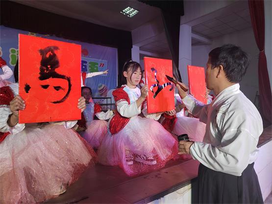 本次活动的高光时刻,要数教师特色表演《今天不上课只走秀》。伴随着动感的音乐,各学科教师组成的走秀方阵闪亮登场。老师们手持自己学科的代表物品,身着汉服款款而来,颠覆了课堂上的严肃形象。美术教师郭栋春现场挥毫,写下“马到成功”四个大字,整个过程如行云流水,赢得全场热烈的掌声。家长们也纷纷举起手机记录这一个个精彩瞬间。