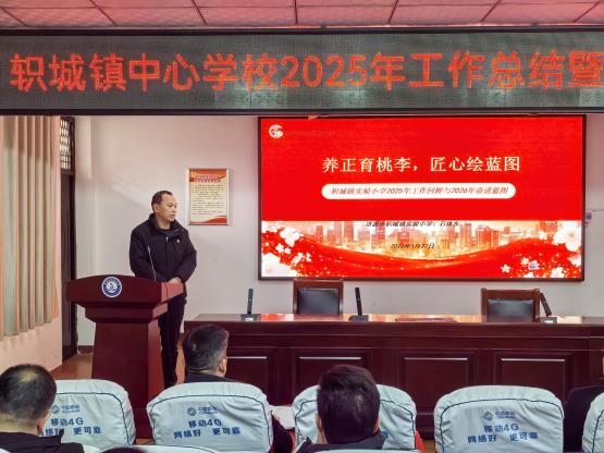 为全面总结2025年教育工作成果,科学谋划2026年发展蓝图,1月28日,轵城镇中心学校举行2025年工作总结暨2026年工作谋划交流会。辖区各中小学、幼儿园校(园)长及中心校全体人员参加会议。会议由中心校副校长黄国军主持。