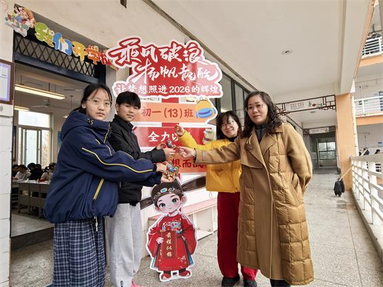 策马冲锋凌云志,百日逐梦正当时。九年级迎来中考冲刺的关键阶段,26班以“百日逐梦 不负韶华”为主题,精心准备了小马笔、小马本、橙子、向日葵、可乐等礼物,寄托心想事成、一举夺魁、天天开心的美好祝愿。同学们齐跳手势舞《我的未来不是梦》,青春誓言铿锵有力。班主任王冬艳老师深情寄语:“愿同学们以龙马精神全力以赴,百日磨砺,终绽锋芒,在今年的中考中马到成功、不负韶华!”21班的同学们手持糖果与红包,带着甜蜜与希望,以最饱满的状态踏上追梦之路。